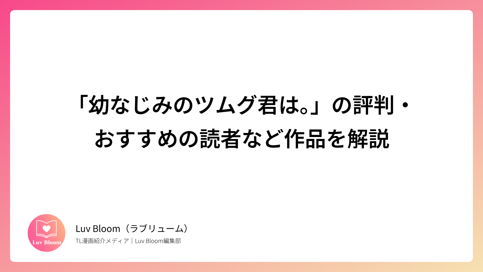 Luv Bloom(ラブリューム)は、TL漫画を中心に、恋愛作品の魅力を紹介する情報メディアです。人気作や話題作はもちろん、レビュー評価の高い作品や隠れた名作まで幅広く取り上げ、作品選びの参考になる情報を発信しています。ストーリー性やキャラクターの魅力、読後感を大切にしながら、TL漫画をより楽しみたい方に向けたコンテンツをお届けしています。