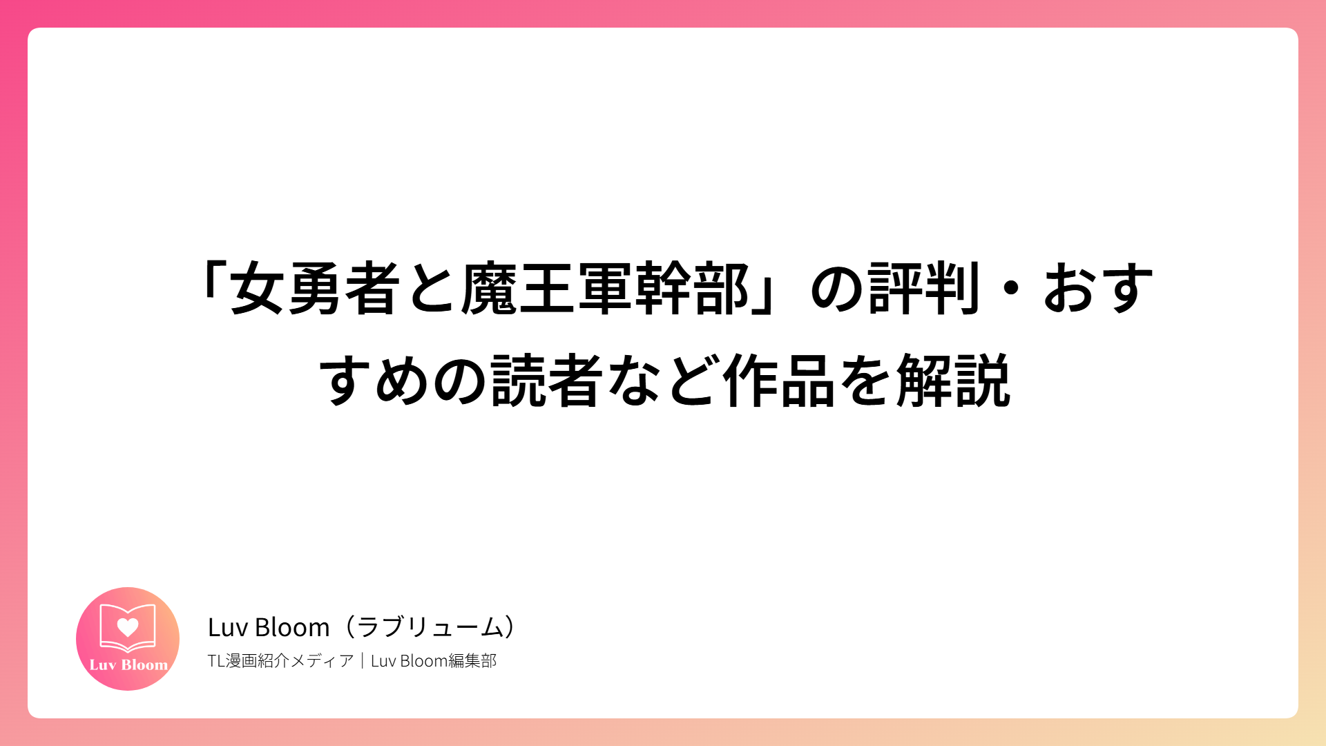 Luv Bloom(ラブリューム)は、TL漫画を中心に、恋愛作品の魅力を紹介する情報メディアです。人気作や話題作はもちろん、レビュー評価の高い作品や隠れた名作まで幅広く取り上げ、作品選びの参考になる情報を発信しています。ストーリー性やキャラクターの魅力、読後感を大切にしながら、TL漫画をより楽しみたい方に向けたコンテンツをお届けしています。